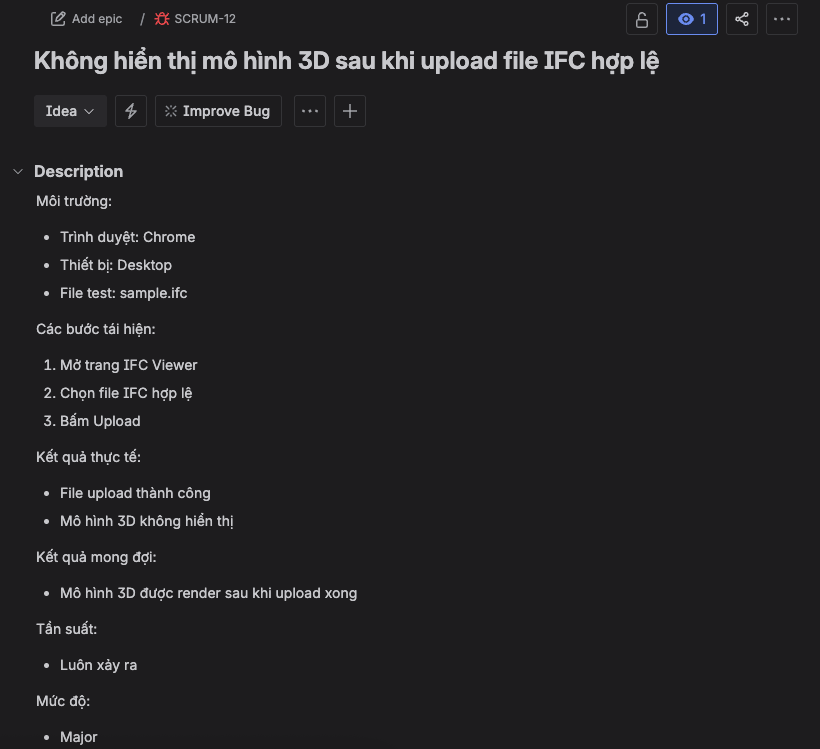 Dự án cá nhân tập trung vào phân tích yêu cầu và kiểm thử thủ công cho ứng dụng web xem file IFC (BIM).
